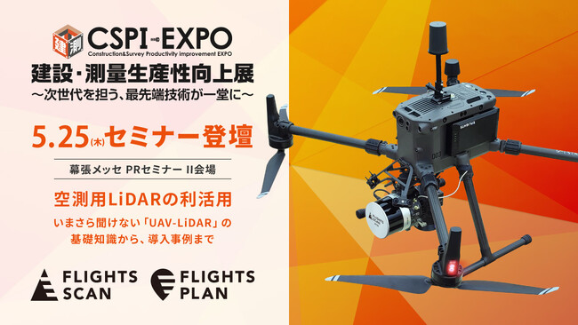 株式会社FLIGHTS(本社:東京都渋谷区、代表取締役:峠下周平 以下:FLIGHTS)は、「第5回 建設・測量生産性向上展 (CSPI-EXPO 2023)」内で行われるセミナーにて、FLIGHTS執行役員 加塩博士による登壇が決定したことをお知らせいたします。5月25日(木)12:50より「空測用LiDARの利活用〜いまさら聞けない『UAV-LiDAR』の基礎知識から、導入事例まで〜」についてお話しいたします。
