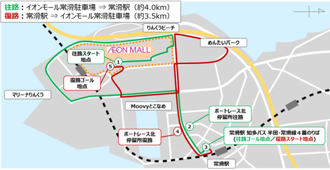 大型バスは、市街地ルートであるイオンモール常滑と名鉄常滑駅間を往復するルートを定時運行します。