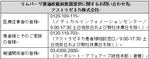 アストラゼネカは、今後も、患者さんの緊急のご要望を満たす薬剤を一日も早く提供する努力を続けるとともに、薬剤の適正使用の促進と安全管理にも力を注いでまいります。