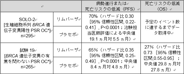 本承認は、プラチナ製剤感受性再発卵巣がんの維持療法におけるリムパーザの2つの無作為化試験(SOLO-2および試験19)の結果に基づいています。