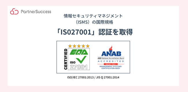 代理店連携管理クラウド「PartnerSuccess」を提供するパートナーサクセスが、国際規格に基づくセキュリティ認証「ISMS認証(ISO27001)」を取得
