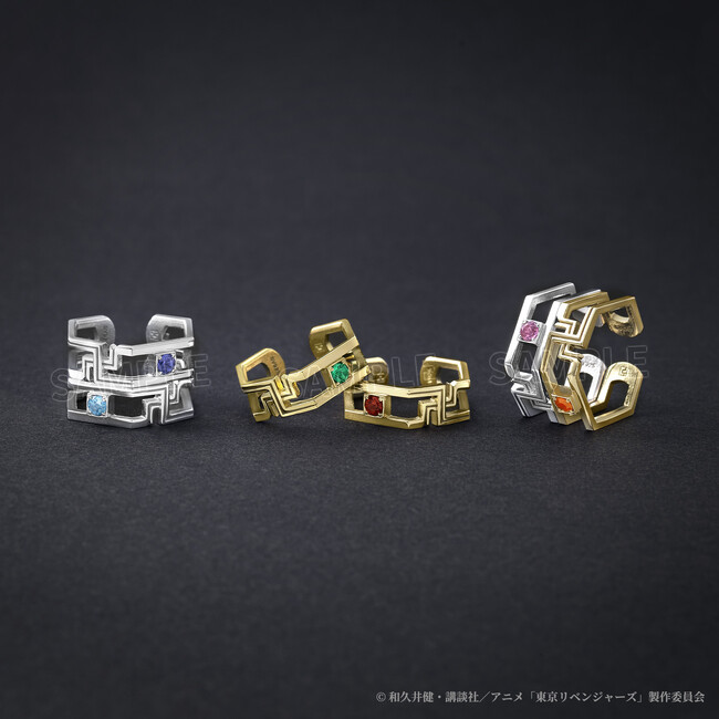 株式会社テイクアップよりTVアニメ『東京リベンジャーズ』コレクションジュエリーが登場!「東京卍會」のメンバー、花垣武道、佐野万次郎、龍宮寺堅、場地圭介、松野千冬、三ツ谷隆をイメージしたオリジナルデザインのイヤーカフを期間限定で受注販売いたします。素材や細部のデザインまでこだわりを込めたイヤーカフは特別感溢れるジュエリーに。キャラクターをイメージして選んだ天然石のカラーや石言葉にも注目です(ハート)