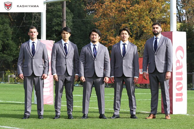 『KASHIYAMA』は、2022〜2023年シーズンにおいて、「横浜キヤノンイーグルス」とオフィシャルパートナー契約を締結しています。選手および監督・コーチ、チーム関係者が試合移動時や公式行事の際に着用するオフィシャルセットアップスーツならびにシャツ・ネクタイを提供し、“Exciting & Quality Rugby”を掲げて、勝利のために闘い続けるチームの活躍をサポートしています。