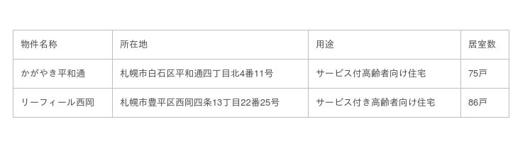 株式会社ブリッジ・シー・キャピタル(本社:東京都中央区、代表取締役社長:横田 大造、以下「当社」)は、Singapore Press Holdings Ltd(本社:シンガポール、CEO:Ng Yat Chung、以下「SPH」)と共同で設立した日本の病院・介護施設・メディカルセンター等のヘルスケア関連不動産向けのファンド第二号案件として、当社が組成しアセットマネージャーを務めるStraits Himawari TMK Two特定目的会社(以下「TMK」)を通じ、以下の2件のサービス付き高齢者向け住宅を8 月 12 日に取得したことをお知らせいたします。