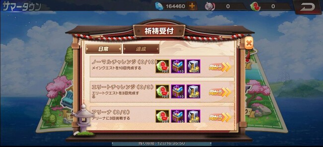 チャレンジモードは、毎日【10:00〜22:00】の間、無制限で挑戦可能です。このモードでは、いくつかのレベルクエストが用意されており、ハートダイヤを獲得することで次のクエストに進むことができます。また、タイマーとポイントが蓄積されていき、タイマー終了時のポイントで毎日のランキングが決定、スイカコインなどの報酬をゲットできます!