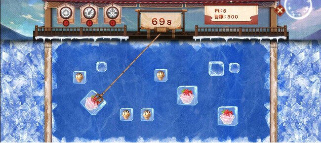 氷室のグラブを操作して宝物が入った氷をゲットしましょう!