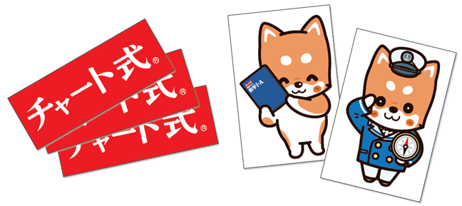 ステッカー…チャート式ロゴ80×30mm(3枚入り)、チャ太郎40×60mm(2枚入り)