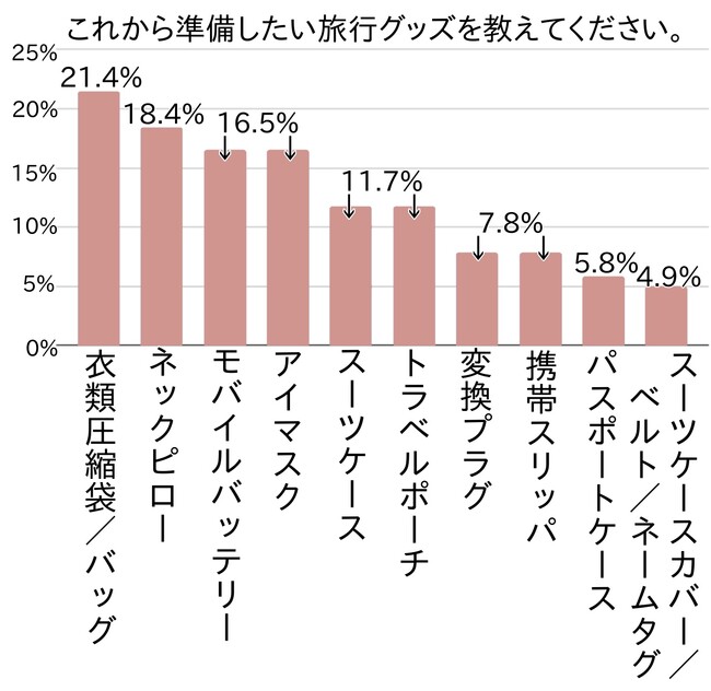 これから用意したい旅行グッズには具体的にどのようなものがあるのでしょうか。アンケートで尋ねました。