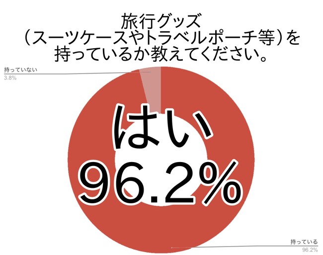 関東にお住まいの方では旅行グッズを持っていると答えた方は96.2%という高い割合でした。全国でもほぼ同じ割合の96.0%でした。