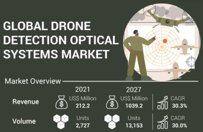 ドローン探知用光学システム市場は2027年に1,039.2百万米ドルに達する見込み