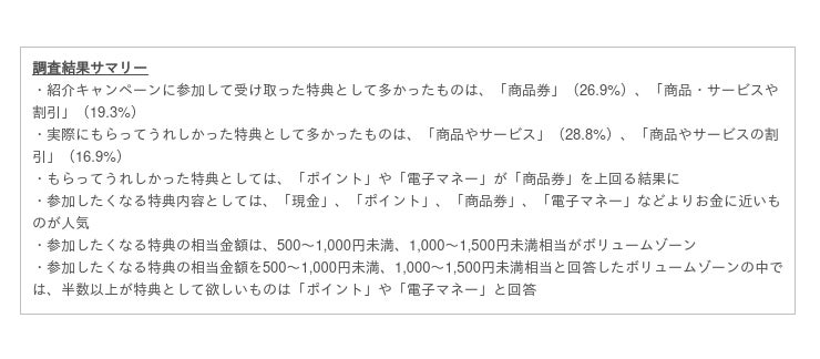 今回は、「友達紹介キャンペーン(※)」の参加者が受け取る特典について、実態を調査しました。