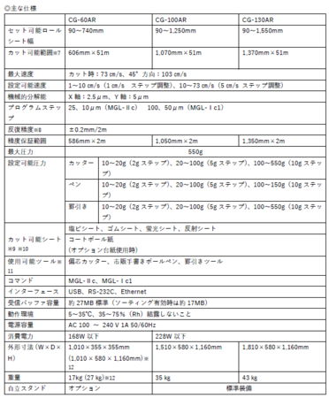 産業用インクジェットプリンタ、カッティングプロッタ、3Dプリンタを手掛ける株式会社ミマキエンジニアリング(本社/長野県東御市、代表取締役社長/池田 和明)は、カッティングプロッタの新製品として、カット可能範囲の異なる3サイズ「CG-60AR(カット可能範囲:幅606mm)」、「CG-100AR(同:幅1,070mm)」、「CG-130AR(同:幅1,370mm)」を発表いたします。