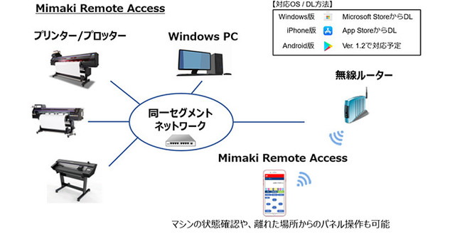 ・「Mimaki Remote Access(MRA)」で離れた場所から本体の稼働状況の確認やパネル操作が可能に