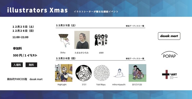 クリスマスイベント『illustrators Xmas』を12月25,26日の2日間限定で錦糸町PARCO 5F「dasak mart」にて開催