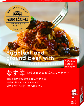1984年登場したピエトロレストランのロングセラーメニュー「なす辛」のレトルトパスタソースが、さらにレストランの味わいに近づきました。不動のレストラン人気No.1メニューを、ぜひご家庭でお楽しみください。