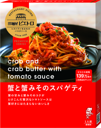 ピエトロ通信販売で累計139万食を突破した、人気No.1の直販限定商品が「洋麺屋ピエトロ」シリーズとして新登場!全国の百貨店や量販店でもご購入いただけるようになりました。国産紅ずわい蟹のほぐし身と蟹みそを使用し、蟹の甘みと蟹みそのコクがとけ込んだ、贅沢なパスタソースです。