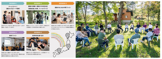全国約40エリアで地方創生事業のプロデュースを行う株式会社さとゆめ(代表取締役:嶋田俊平、以下「さとゆめ」)と、日本最大級の異業種混合型リーダーシップ開発プロジェクトを提供する一般社団法人ALIVE(代表理事:庄司 弥寿彦、以下「ALIVE」)が共同事業として運営しています。3カ月の期間で実際に地域のフィールドワークを重ね、「チームビルディング⇒フィールドワーク⇒最終提案⇒振り返り」を行います。現業の立場や複業・プロボノ的にプロジェクトに緩やかに関わりながら、関係性を深めることを目的としています。