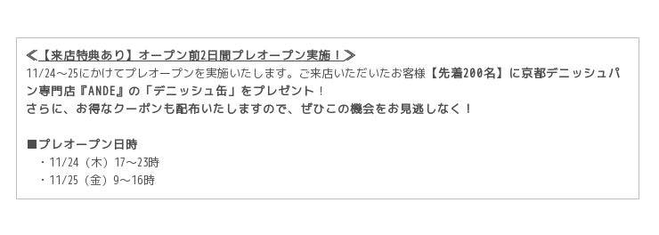 11/24(木)〜25(金)は、プレオープンイベント実施。先着200名様に特製『デニッシュ缶』プレゼント!