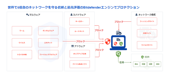 高い検知能力を誇るBitDefender社の次世代検知エンジンにより、次世代セキュリティを提供します。