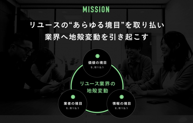 業者間の競争は年々激化しています。しかし、私たちは「競争」より「共存」を選択し、リユース業界全体が繁栄する取り組みを行っていきます。にらみ合いが続く同業他社の境目を無くし、市場全体の拡大を狙います。