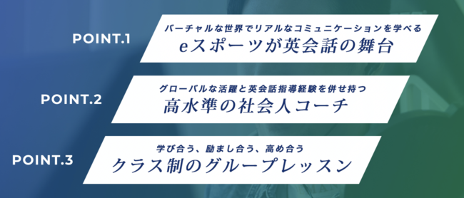 1、バーチャルな世界でリアルなコミュニケーションを学べる「eスポーツが英会話の舞台」