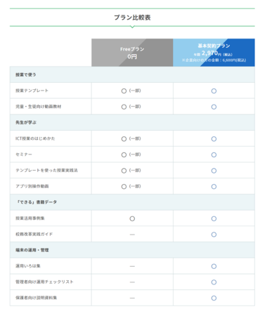 そのほかにも基本契約プランは、教科書と連動した教材テンプレートや「できるシリーズ」の書籍データ、端末の運用・管理に関する資料など、350以上の豊富なコンテンツをご用意しています。(Freeプラン:約100コンテンツ)