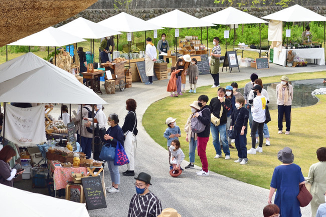 岡山県内の注目店やブランドが次々登場。焼き菓子、パン、コーヒーなどを扱う飲食店はもちろん、服や帽子、多肉植物といった雑貨の店などが勢揃い。蒜山の美しい自然に囲まれて、思いがけないアイテムや店との出会いを楽しめる場となります。