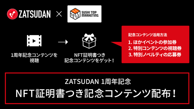 ZATSUDANとSUSHI TOP MARKETING、ZATSUDAN1周年記念キャンペーン NFT配布イベント実施のお知らせ