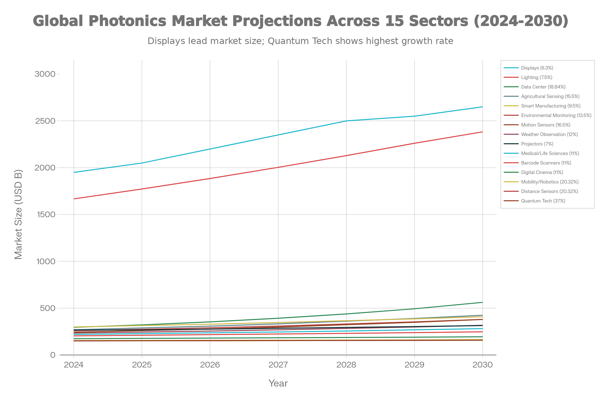 超高成長分野(CAGR 25%以上:量子技術、Micro-LED、MEMSレーザースキャナ、Solid-State LiDAR)への先行投資、高成長分野(CAGR 15〜25%:データセンター・コンピューティング、モビリティ・ロボティクス、距離センサー、モーションセンサー、農業センシング)への集中投資、中成長分野(CAGR 8〜15%:スマートマニュファクチャリング、医療・生命科学、環境モニタリング、気象観測、デジタルシネマ、バーコードスキャナー)での差別化・効率化戦略、安定成長分野(CAGR 8%未満:照明、ディスプレイ、プロジェクター)での高付加価値化・新規アプリケーション開拓という、成長段階別の戦略選択肢を明確に提示している。