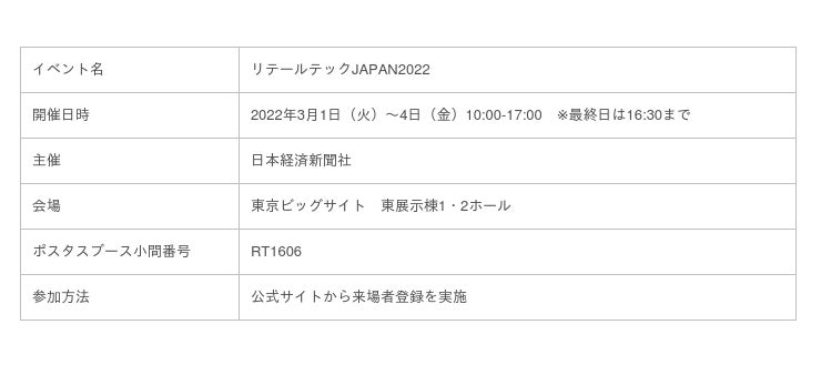 総合人材サービス、パーソルグループでクラウド型モバイルPOSレジの「POS+(ポスタス)」を提供するポスタス株式会社(本社:東京都中央区、代表取締役社長:本田 興一、以下:ポスタス)は、2022年3月1日(火)〜4日(金)に東京ビックサイトで開催される、第38回流通情報システム総合展「リテールテックJAPAN2022」に出展します。