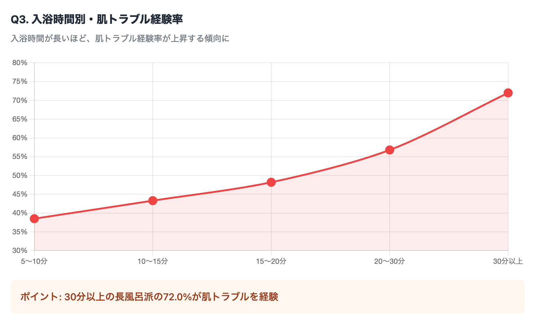 Q3. 入浴時間はどれくらい?―「30分以上の長風呂派」の7割が肌トラブルを経験