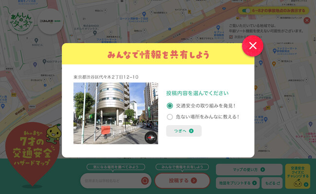 「私のまちの7才の交通安全ハザードマップ」に投稿機能を追加