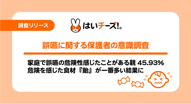 1.家庭で誤嚥の危険性感じたことがある親45.93%、危険を感じた食材『飴』の事例が一番多い結果に