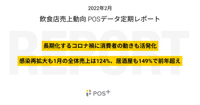 クラウド型モバイルPOSレジ「POS+(ポスタス)」、飲食店売上動向レポート2022年2月