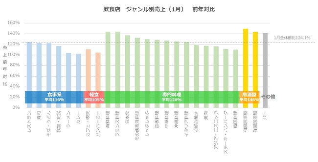 〜長期化するコロナ禍に消費者の動きも活発化、感染再拡大も1月の全体売上は124%、居酒屋も149%で前年超え~