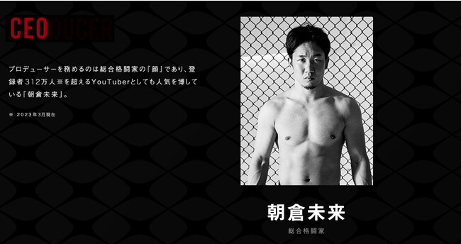 同大会は登録者数312万人超え(2023年3月現在)の人気YouTuberでもある総合格闘家の朝倉未来がCEOを務め、スペシャルアドバイザーとして総合格闘家の朝倉海、総合格闘家の白川陸斗が参画しています。