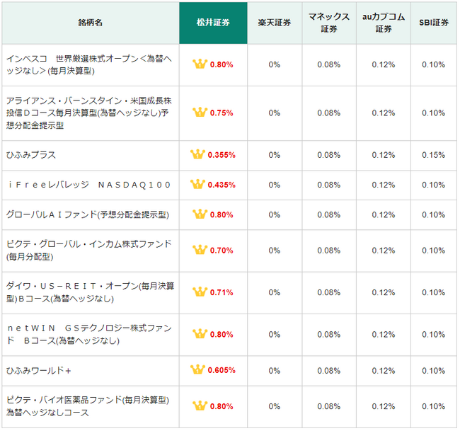 投資信託取扱商品一覧(https://fund.matsui.co.jp/fund/search/list/index.html)