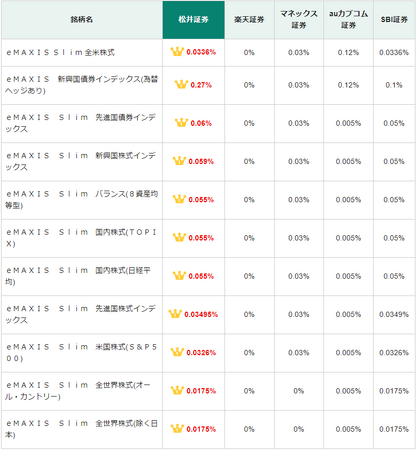 ポイント還元率は銘柄により異なります。人気のeMAXIS Slimシリーズなどのインデックス型も含めた全銘柄が対象となります。