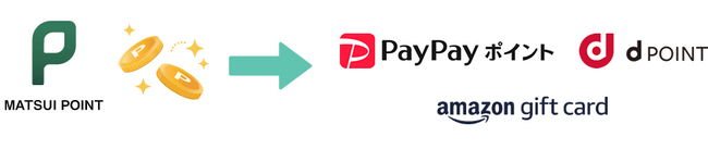 本サービスで付与されるポイントは松井証券ポイントとなります。松井証券ポイントは、特定の投資信託の購入や1P=1円でdポイントとの交換などができる便利なポイントです。