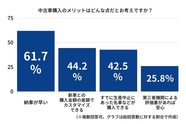 中古車購入のメリット1位は「納車が早い」(61.7%)