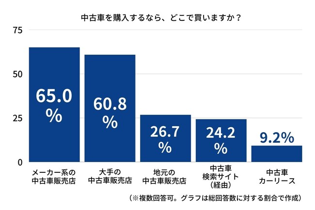 中古車を買うなら「メーカー系の中古車販売店」(65.0%)が一番人気