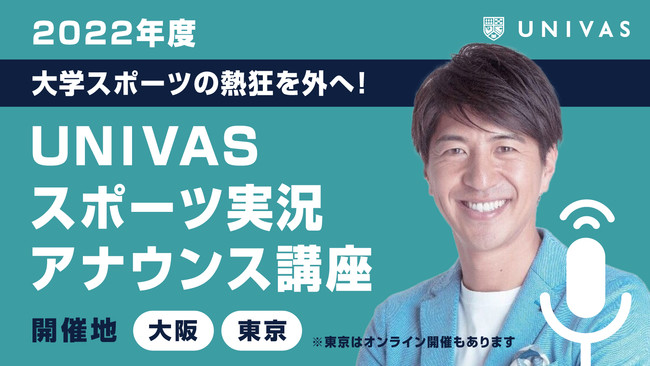 一般社団法人大学スポーツ協会(所在地:東京都千代田区、会長:福原紀彦、以下 UNIVAS)は、学生が大学スポーツを身近に感じてもらい、大学スポーツを「ささえる」学生の拡大、育成を行っていくため、『UNIVASスポーツ実況アナウンス講座』を開催します。 これまでアナウンス講座は東京のみで開催してきましたが、関西エリアでの大会も予定されていることから 初めて大阪で開催いたします。また東京会場は、遠隔でも参加していただけるようにオンラインでの配信を行い、幅広い学生に参加していただくことが可能となりました。講師はスポーツアンカーとして活躍する田中大貴氏をお迎えし、実況のスキルや事前準備の重要性などをお話しいただきます。
