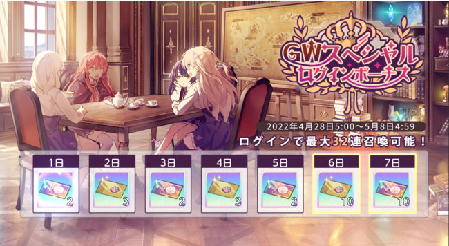 内容:期間中ログインするだけで最大7日間分の豪華な報酬が獲得できます。最大で32連分の召喚券をゲット!