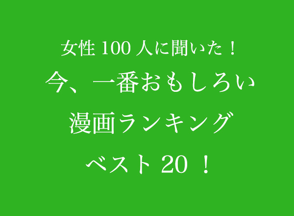今、一番おもしろいと思う連載中の漫画ランキングベスト20!【女性100人へのアンケート調査】
