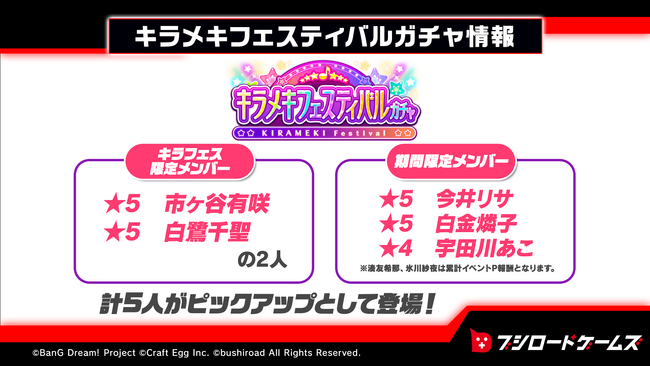 「バンドリ! ガールズバンドパーティ!」、「キラメキフェスティバルガチャ」の開催情報を発表!