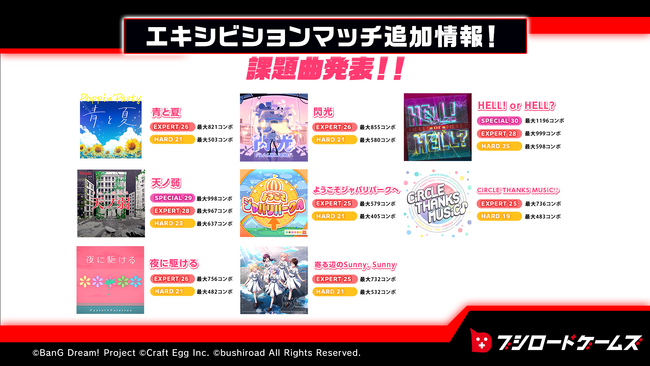 第5回ガルパ杯エキシビションマッチの課題曲を発表いたしました。当日は課題曲の中から選曲されます。