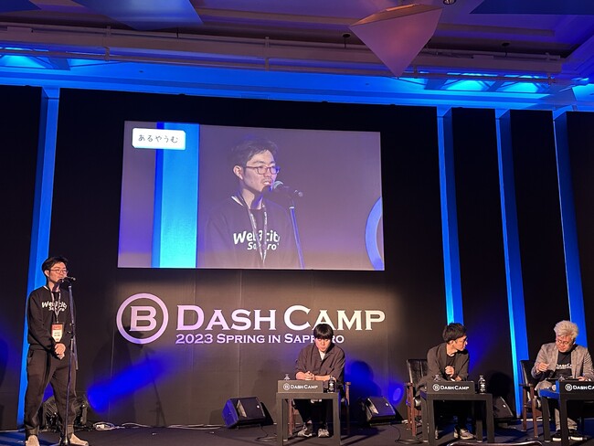 B Dash Camp 2023 Spring in Sapporoではスタートアップ企業によるピッチコンテスト「Pitch Arena」、web3領域に特化したピッチコンテスト「Crypto Arena」、開催地札幌市とのコラボレーションピッチコンテスト「Sapporo Pitch」が開催されました。その中で、あるやうむはSapporo Pitchに登壇しました。