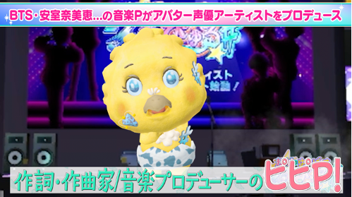 フジテレビ×ZEPETO共同企画としてZEPETOのアプリ内で声優アーティストオーディションが開催されます。オーディション参加者は自分のアバターを作り、歌唱テストや面接へ挑みます。その後オーディションに合格したものは、番組が用意する様々な課題を乗り越えて、グループでのアーティストデビューを目指します。ZEPETO内だけではなく、メタバース界で幅広く活動するアバターアーティストを育てるため、彼らの指導をBTSや安室奈美恵にも楽曲を提供している、作詞・作曲家/音楽プロデューサーの岡嶋かな多が務めます。自身も「ピピP」というひよこのアバターとなり、ZEPETO内で参加者たちを熱く指導する様子は必見です。果たして脱落者が出ることなくデビューできるのか!?