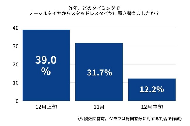 昨年、冬用タイヤに履き替えた時期が一番多かったのは「12月上旬」