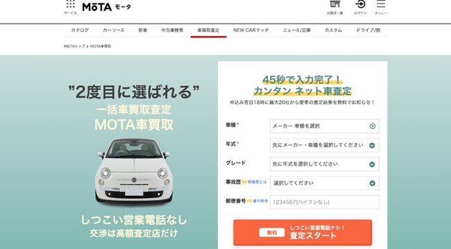 <MOTAが運営する「MOTA車買取査定」>